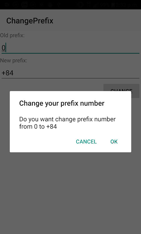 Informacje Change prefix number APK