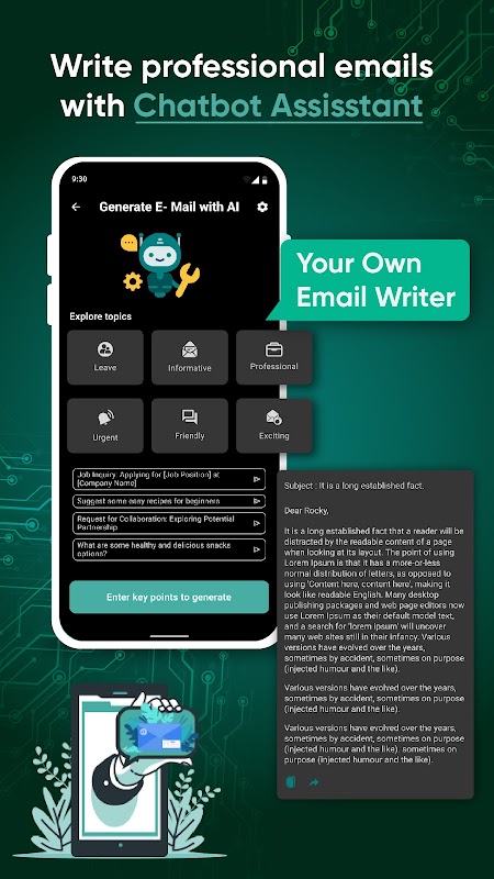 Pożegnaj trudy tworzenia e-maili! Aplikacja AI Email Writing może pomóc w pisaniu profesjonalnych e-maili. Chat AI: Wirtualny asystent może wygenerować Twój e-mail w ciągu kilku kliknięć i sekund bez dodatkowego wysiłku.