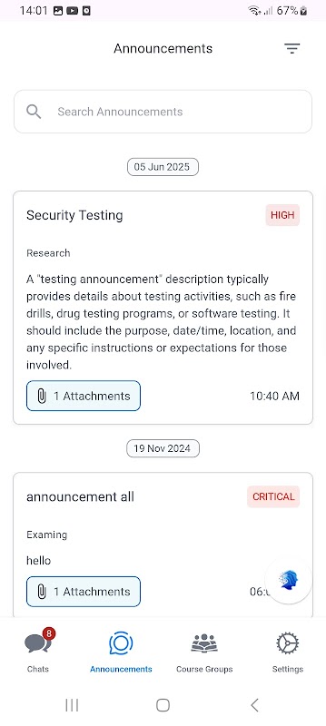 Chatly to bezpieczna i inteligentna aplikacja do komunikacji na terenie uczelni, przeznaczona dla szkół wyższych i uniwersytetów. Umożliwia studentom, nauczycielom i administratorom bezpieczne łączenie się i współpracę w obrębie uczelni, bez udostępniania numerów telefonów ani korzystania z aplikacji zewnętrznych, takich jak WhatsApp czy Telegram.