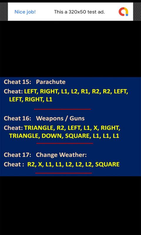 Cheat Codes for GTA 5 (Cheat Codes for GTA V) app provide complete cheat codes guide for Grand Theft Auto V. Cheat Codes for GTA 5 App contains all cheat codes for Grand Theft Auto V game for every console and platform. Cheat Codes for GTA 5 App can be used offline and no internet connection is needed for this app.