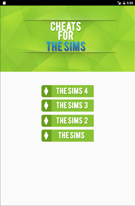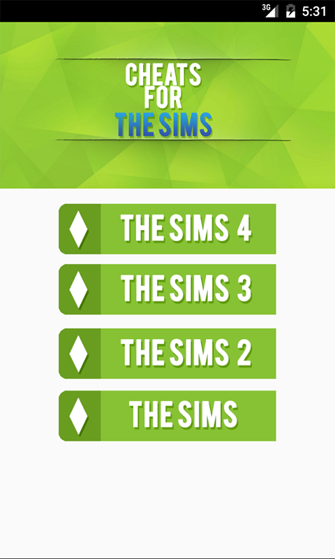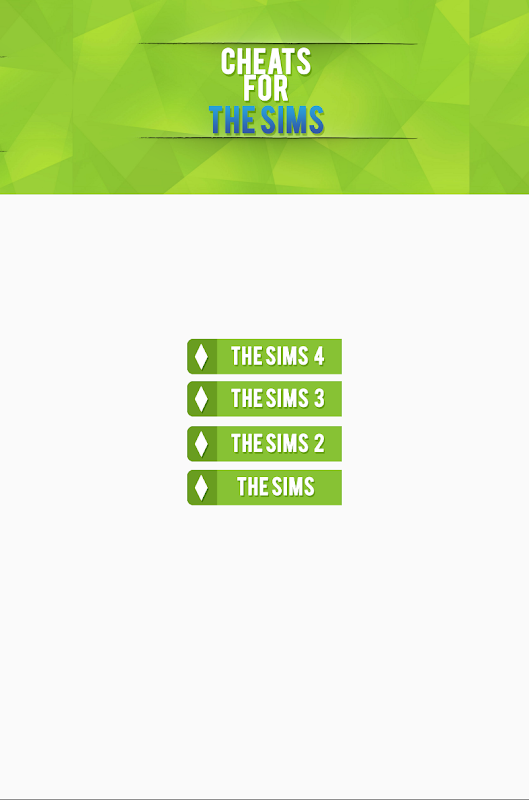 → The application provides many different game cheat codes for The Sims series.