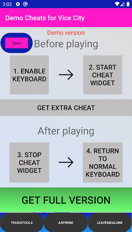 Aplikacja może otwierać pływający widżet, z którego możesz otworzyć klawiaturę, która pozwoli Ci korzystać z kodów w grze Vice City.