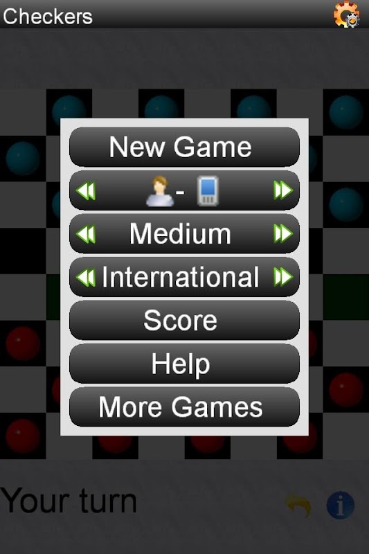 Warcaby rozgrywane przez dwóch przeciwników, po przeciwnych stronach planszy, naprzemiennie. W trybie dla jednego gracza, gracz zawsze jest na dole (niebieski), niezależnie od tego, kto porusza się pierwszy. Pionki poruszają się po skosie na ciemnych polach, a pionki przeciwników są brane przez przeskakiwanie nad nimi na niezajęte pole. Bicie jest obowiązkowe. Gdy dostępna jest sekwencja wielokrotnych bić, gracz może wybrać sekwencję, ale musi wykonać wszystkie dostępne bicia. Gdy pionki dotrą do najdalszego rzędu do przodu, stają się królami, co umożliwia im ruch do tyłu.
