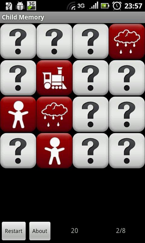 Child Memory if fun to play for all ages. Let your child practice and evolve. Use harder levels to keep challenging your child. Child Memory is even fun for the youngest kids!