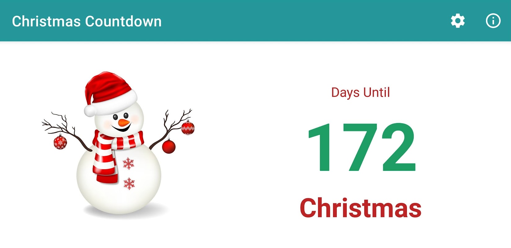Wskazuje liczbę dni do Bożego Narodzenia wraz z grafiką dnia.