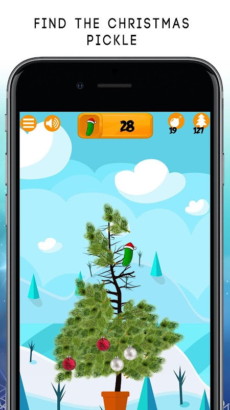 Tap or swipe the limbs on the Christmas tree to find pickles. Earn additional trees inside the ornaments or presents. Swipe underneath the tree to go to the next tree.