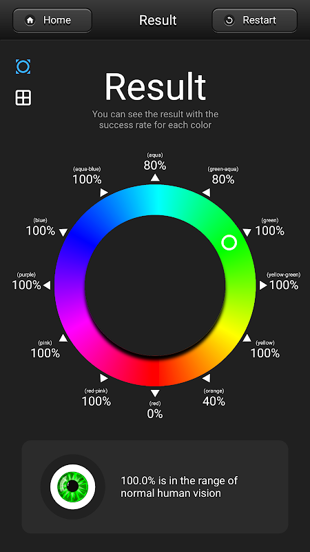 Aplikacja symuluje tak zwany „test odcieni Farnsworth-Munsell 100” i jest przeznaczona do testowania zdolności do wyizolowania i rozmieszczenia drobnych różnic w różnych docelowych kolorach ze stałą wartością i nasyceniem, które obejmują wszystkie odcienie wizualne.