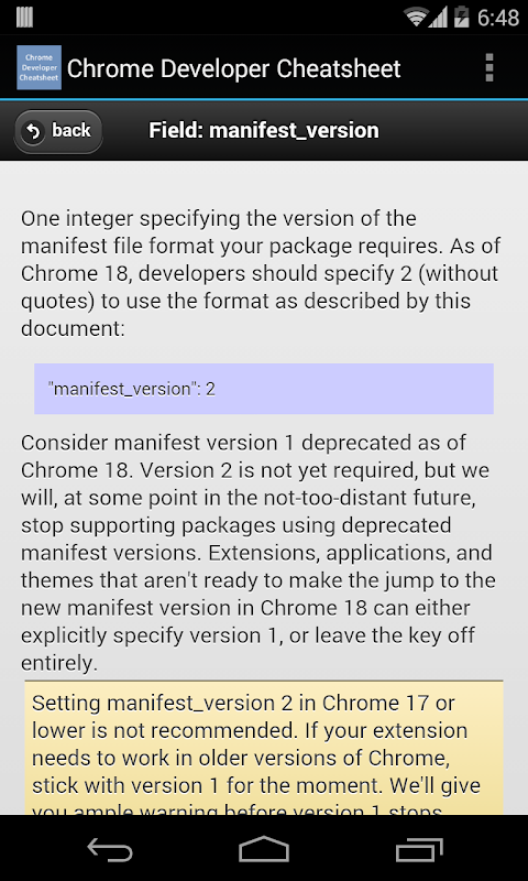 Chrome Developer Cheatsheet serves as a powerful tool for offline access to the Chrome extension's manifest file's fields and their summary.