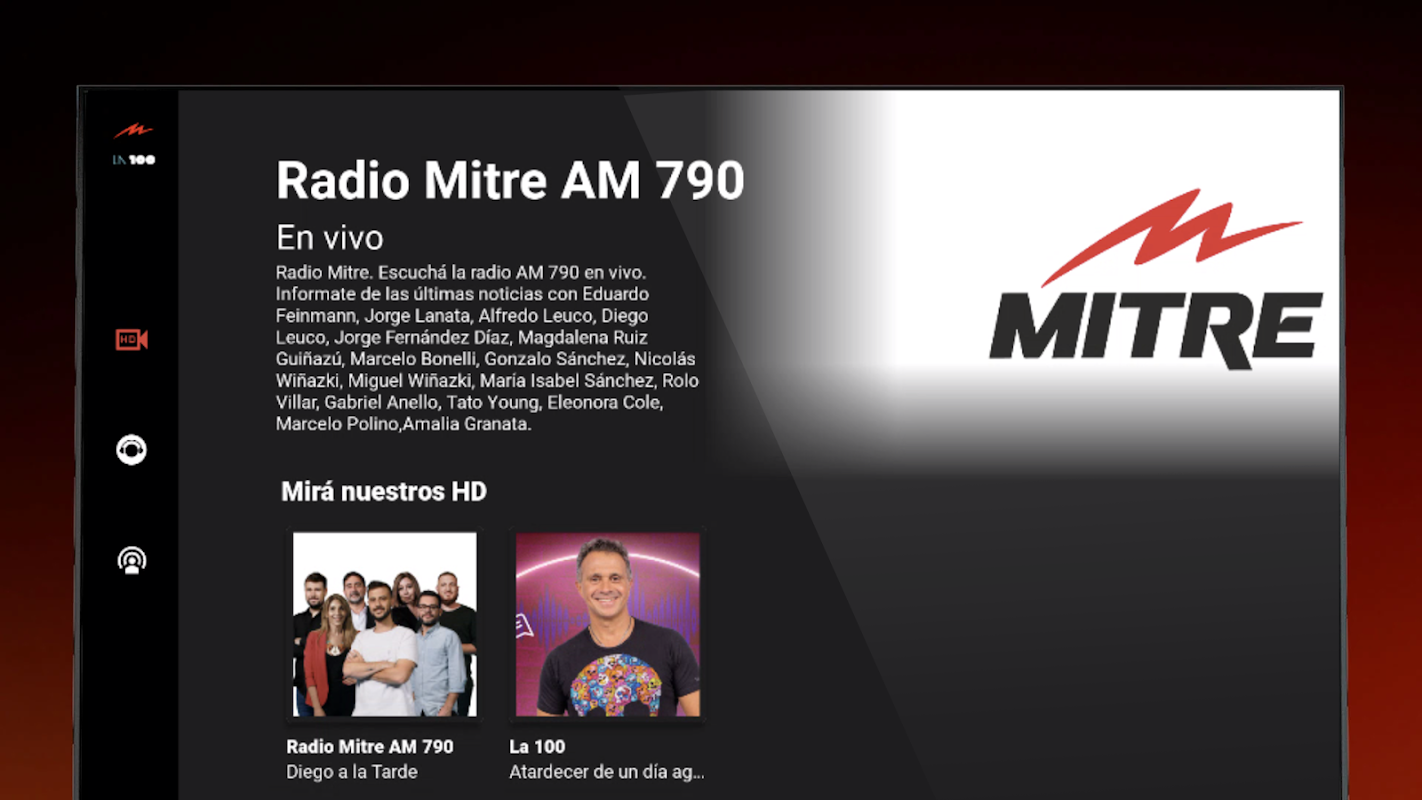 Słuchaj Radia Mitre, La 100 i innych stacji radiowych: wiadomości, sport, muzyka i nie tylko.