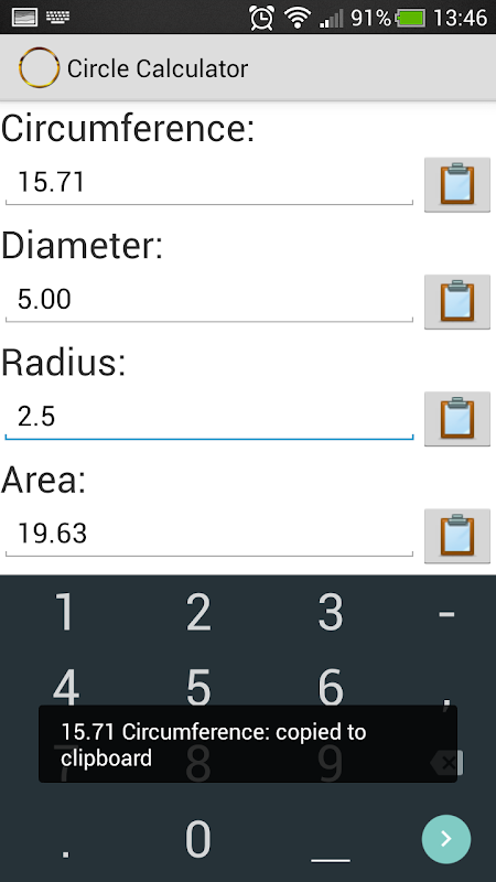 Prosty i łatwy w użyciu promień okręgu, obwód, Kalkulator Obszar