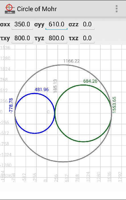 2D i 3D, interaktywne Koło Mohra, bardzo przydatne dla inżynierii lądowej i mechanicznej.