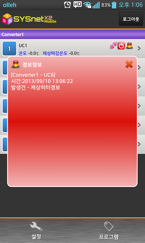 CJ 군포 물류창고 공조 모니터링 앱니다.