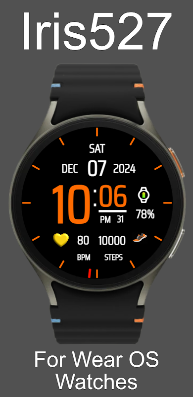 • Tylko Wear OS: Tarcza zegarka Iris527 została zaprojektowana specjalnie dla urządzeń z systemem Wear OS.