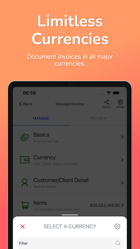 Twórz wspaniałe faktury, paragony, dane klientów i nie tylko w ciągu kilku sekund, a wszystko to w jednej, przyjaznej dla użytkownika aplikacji. Nigdy więcej nie goń za płatnościami!