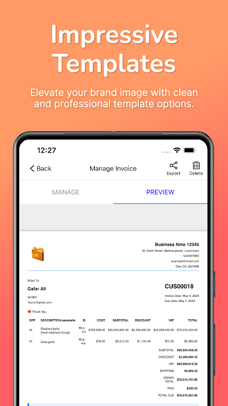 Generuj profesjonalne faktury biznesowe, szacunki i rachunki w ciągu kilku sekund