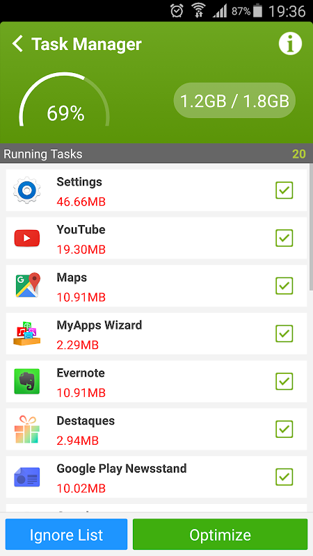 - Automatyczna optymalizacja telefonu, pamięć, czas pracy baterii