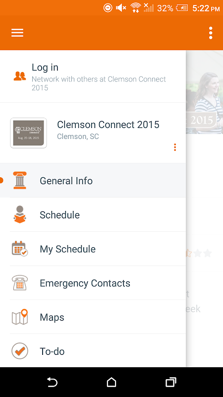Zdarzenia aplikacja Clemson University zawiera prowadnice do ważnych wydarzeń na uczelni. Aplikacja pozwala na dostęp do harmonogramów zdarzeń, zasoby akademickie, opcje żywności i godziny, mapy kampusu i bardziej w zasięgu ręki 24/7.