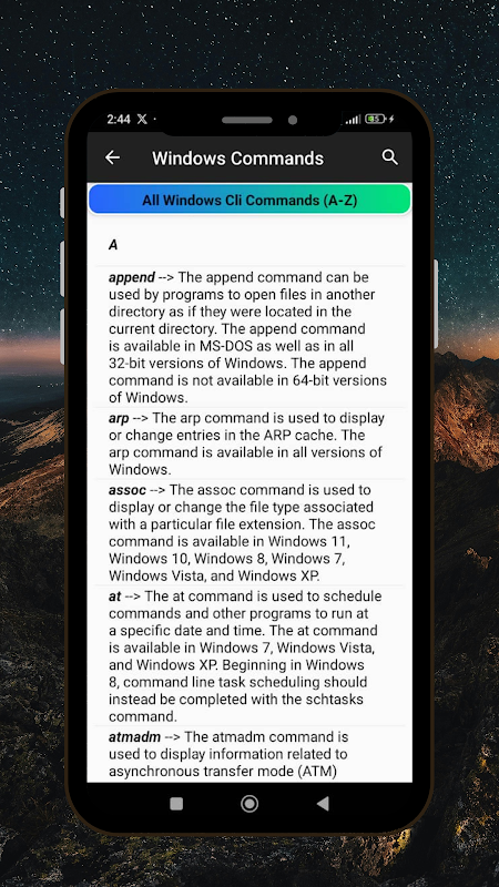 Odblokuj możliwości wiersza poleceń systemu Windows dzięki naszej wszechstronnej aplikacji poleceń Windows CLI! Niezależnie od tego, czy jesteś początkującym zgłębiającym podstawy, czy zaawansowanym użytkownikiem szukającym szybkiego odniesienia, ta aplikacja to podstawowe źródło wiedzy umożliwiające opanowanie wiersza poleceń.