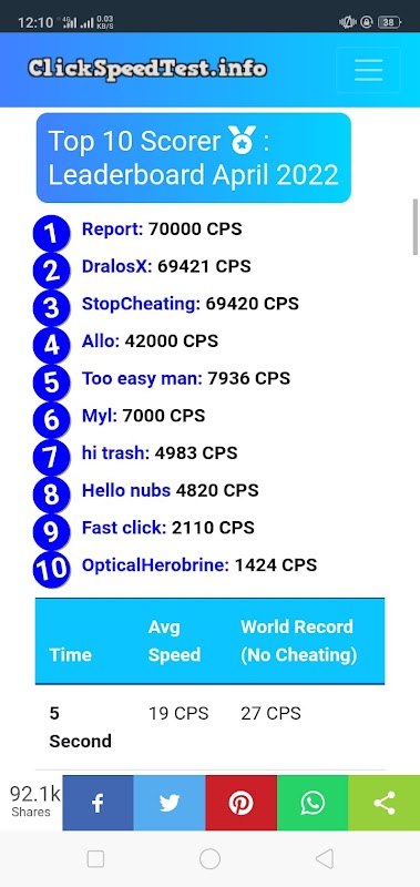 CPS Counter is clicking test online unblocked with leaderboard. Challenge your ability to count spatie CPS (Clicks Per Second) test score!!