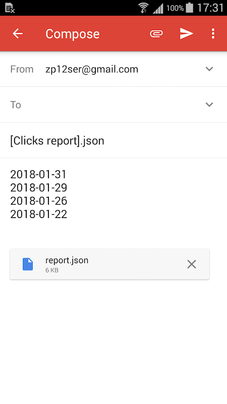 The application can group clicks on dates, generate and share a report in json-file format, does not require any additional permissions, can be run on Android Wear devices, is an open source project.
