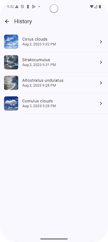 Cloud Identifier to Twój osobisty ekspert od chmur. Wystarczy zrobić zdjęcie nieba, a nasza aplikacja przeanalizuje i zidentyfikuje rodzaje obserwowanych chmur. Dowiedz się więcej o ich formacjach, wpływie na pogodę, a nawet śledź wzorce pogodowe na podstawie typów chmur. Niezależnie od tego, czy jesteś entuzjastą chmur, studentem, czy po prostu ciekawi Cię niebo, Cloud Identifier zapewnia fascynujące informacje na wyciągnięcie ręki.