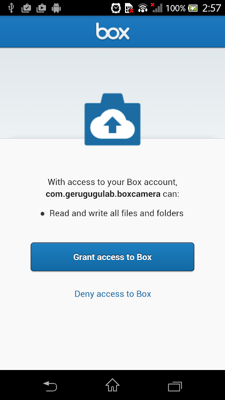 Photos or videos taken by this app will be uploaded automatically to your Box immediately.