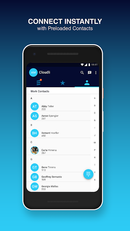 Backed by enterprise-grade reliability, Cloudli offers flexible and dynamic mobile-focused business phone capabilities: place and receive calls, converse with co-workers and customers via text, share numbers with your team to keep everyone in the loop, set up text message auto-replies and automated attendants and more.