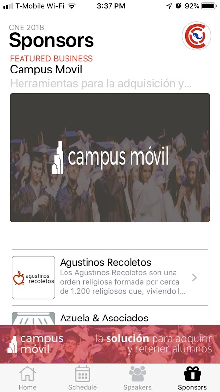 Con la aplicación, usted puede ver el itinerario, patrocinadores, discursantes, recibir alertas, y mucho mas!