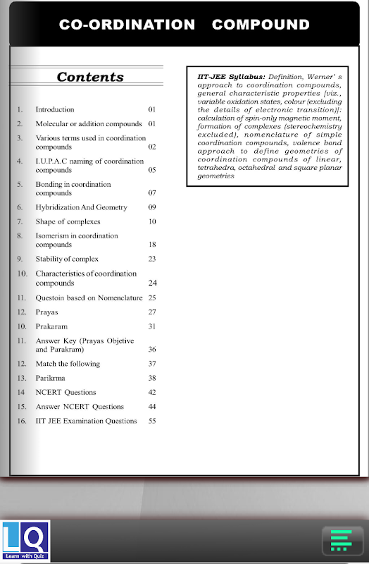 Chemistry (AIEEE, IIT-JEE Main, AIPMT, NEET-JEE, GujCET) Co-ordination Compound Interactive e-Book Education application