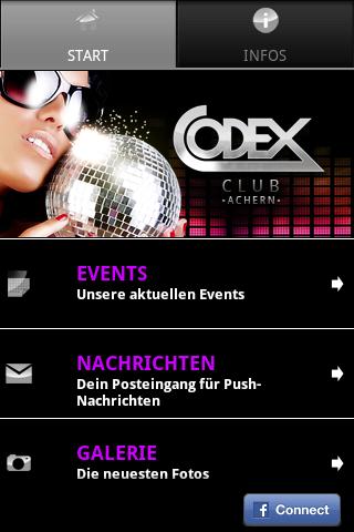 Die CODEX Smartphone App hält die neuesten Informationen aus Deiner Lieblingsdisco, dem CODEX Club in Achern, für Dich bereit.