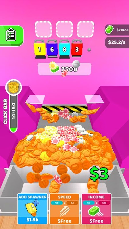 * Połącz i ulepsz swoje maszyny do monet.