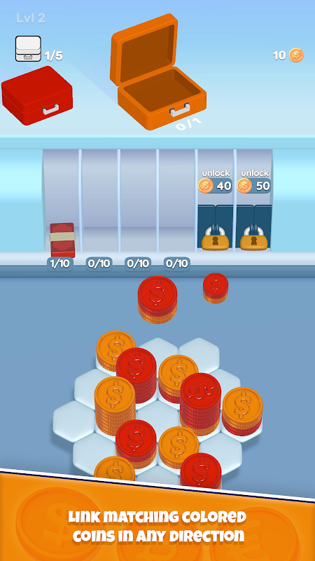 Umieść kolorowe stosy monet na planszy i obserwuj magię, jak pasujące kolory łączą się w chrupiące papierowe banknoty. Ale czekaj, to nie wszystko! Napełnij te spragnione pieniędzy worki i odblokuj nowe poziomy. Im więcej worków napełnisz, tym bliżej będziesz zwycięstwa!