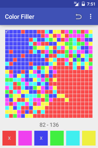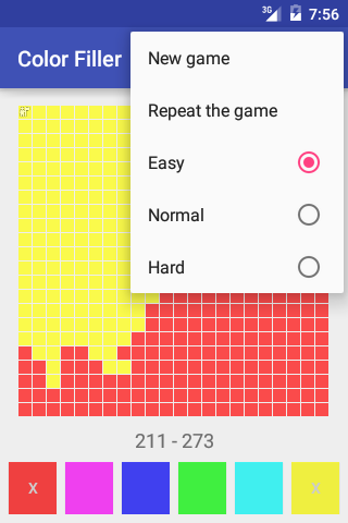 Kolor Filler to gra logiczna. Gracze muszą uchwycić obszar, malowanie przez kolor komórki. Twoja pozycja znajduje się w lewym górnym rogu. Zwycięzcą zostaje gracz, aby zdobyć dużą liczbę komórek.