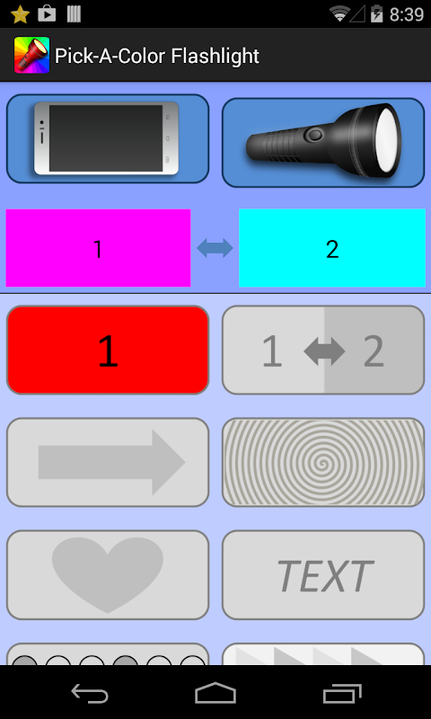 We wszystkich urządzeniach, Kolorowa Latarka zmienia ekran w kolorową latarkę. Użyj próbnika koloru, aby wybrać dwa kolory, które będą używane do oświetlenia ekranu.
