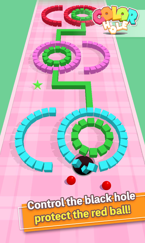 Używaj jednego palca, aby kontrolować czarną dziurę, aby zjeść kostki i chronić czerwoną kulkę.