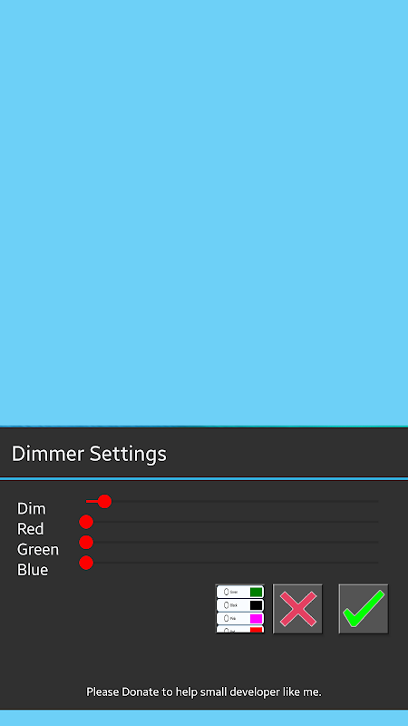 Colored Dimmer is use to Dim and Darken brightness of your phone screen with lots of color to choose.