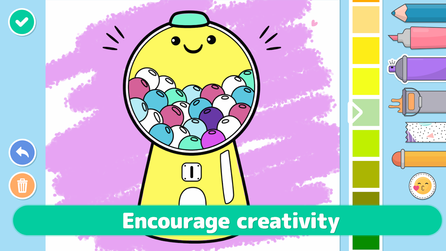 Gra została zaprojektowana, aby pomóc Twoim dzieciom w łatwym tworzeniu pięknych rysunków. Zawsze możesz poprawić błędy za pomocą przycisku „cofnij”.