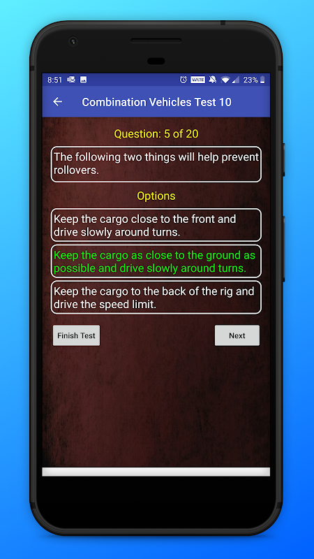 Test pojazdów kombinowanych – CDL to bezpłatna aplikacja przygotowująca do testu pojazdów kombinowanych CDL. Rekomendacja pojazdu kombinowanego CDL to doskonały wybór dla tych, którzy chcą naprawdę zwiększyć liczbę pojazdów, którymi mogą jeździć. Pojazdy kombinowane to pojazdy z ciągnikiem i wieloma przyczepami, często przyczepy o różnych rozmiarach i układach. Pomyślne prowadzenie tych ciężarówek na poziomie regionalnym, lokalnym lub krajowym wymaga specjalistycznej wiedzy i doświadczenia w prowadzeniu pojazdów. Możesz zarabiać wyższą pensję lub mieć lepsze perspektywy pracy, jeśli możesz podejmować się bardziej skomplikowanych zaciągów. Ta aplikacja zawiera pytania z rzeczywistego egzaminu na pojazdy kombinowane, który odbył się w 2017, 2018, 2019, 2020, 2021 i 2022 roku.