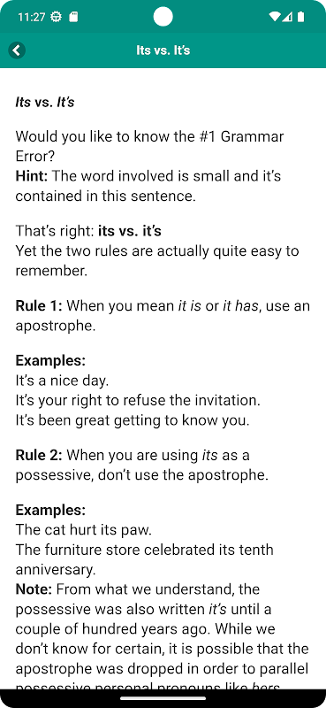 Częste błędy gramatyczne w języku angielskim, a nie prawo zwyczaje. Błędy w zdaniu tam odpowiednich zastosowań. Mówiąc lub pisząc w języku angielskim, narody zrobić bardzo typowych błędów. Z tej aplikacji, będziesz w stanie nauczyć się wszystkich tych typowych błędów i unikać ich. Korzystanie z tej aplikacji można zrozumieć, nauczyć się i poprawić w tych typowych błędów.