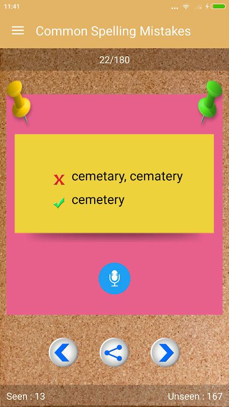 Po ogromnej popularności Common angielskich błędów, a ze względu na duże zainteresowanie z Common English Mistake Użytkowników, w końcu zdecydował się na dedykowaną aplikację dla poprawy angielskiego warianty pisowni!