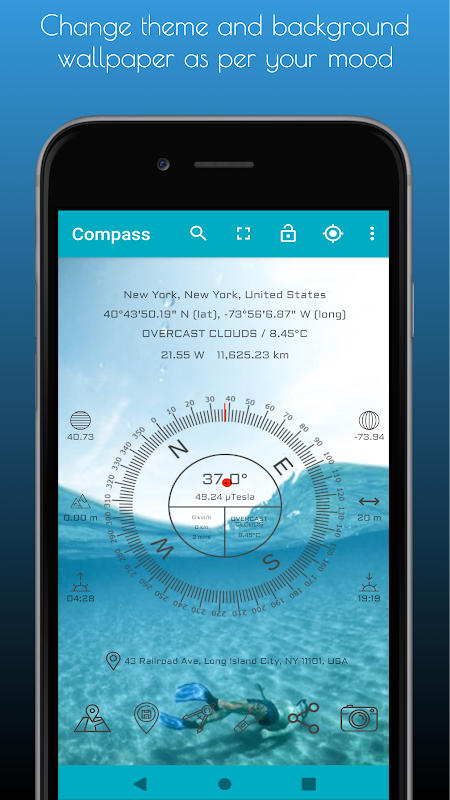 3. Zintegrowane narzędzia: Wykorzystaj wbudowany prędkościomierz, inklinometr, magnetometr (wykrywacz metalu) i otrzymuj aktualne informacje o pogodzie, aby podejmować świadome decyzje.