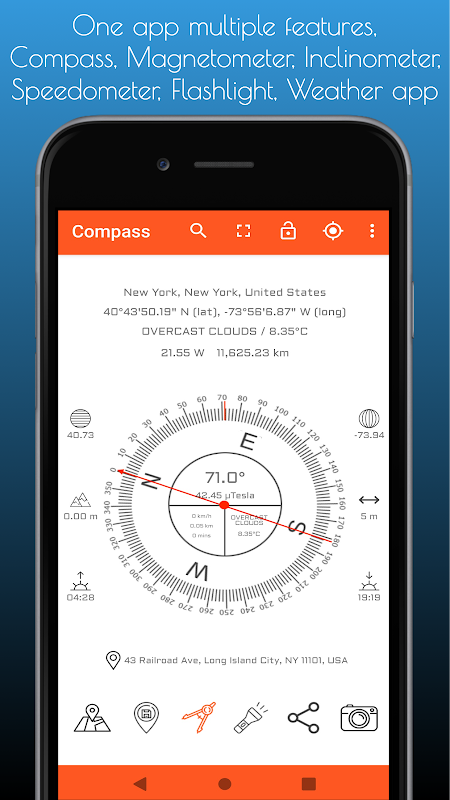 1. Dokładna nawigacja: Uzyskaj dokładne odczyty kierunku, szerokości, długości i wysokości. Bądź na bieżąco dzięki aktualizacjom pogody w czasie rzeczywistym oraz godzinom wschodów i zachodów słońca.