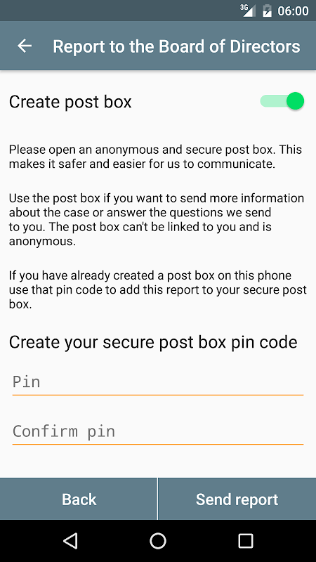 The app also acts as a whistleblowing portal, letting you report whistleblowing concerns to your company completely anonymously from within the app.