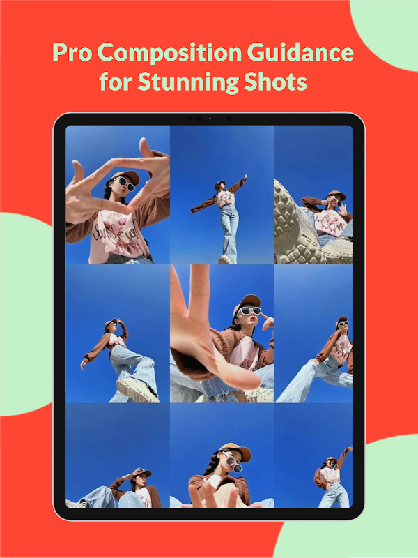 Ta aplikacja Aparat pozwala każdemu robić pięknie skomponowane zdjęcia, korzystając z przewodnika po kompozycji i zdjęcia modelki jako przezroczystości.