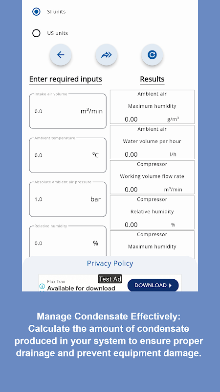 Obliczanie kondensatu: Oszacuj ilość kondensatu (pary wodnej), która utworzy się w systemie sprężonego powietrza w oparciu o warunki pracy. Pomaga to zaplanować odpowiedni drenaż i uniknąć problemów z korozją.