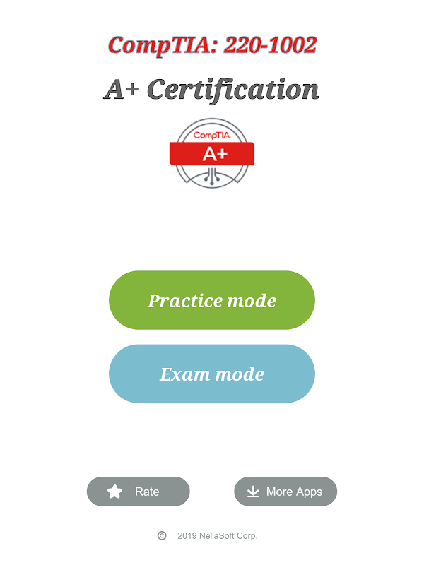 Free exam dumps for CompTIA A+ 2019 certification 220-1002 (Core 2) exam. This app includes free exam questions with answers, and also a powerful exam engine.