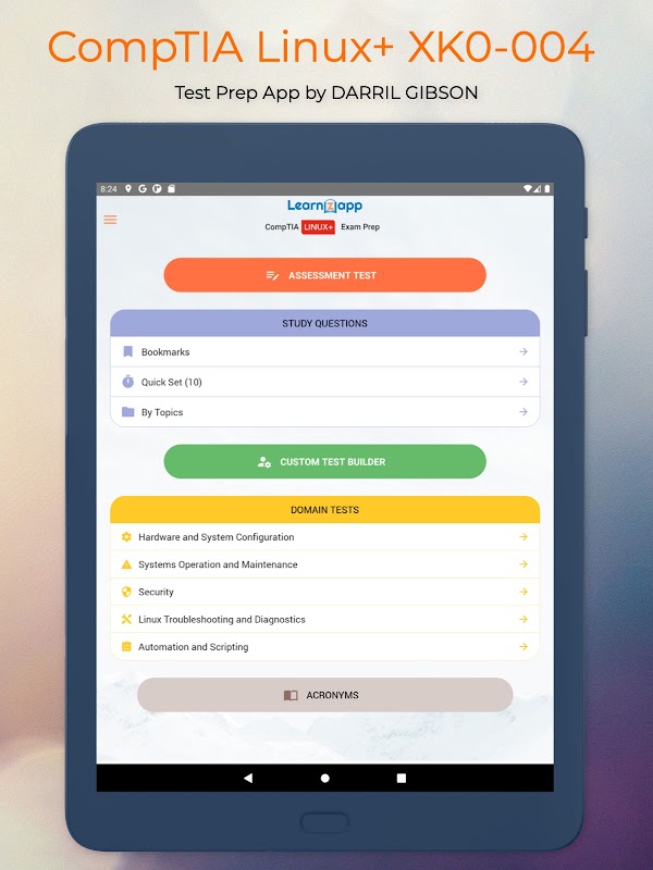 Zdobądź wyższy wynik na egzaminie CompTIA Linux+ XK0-004 dzięki tej aplikacji autorstwa Darrila Gibsona.