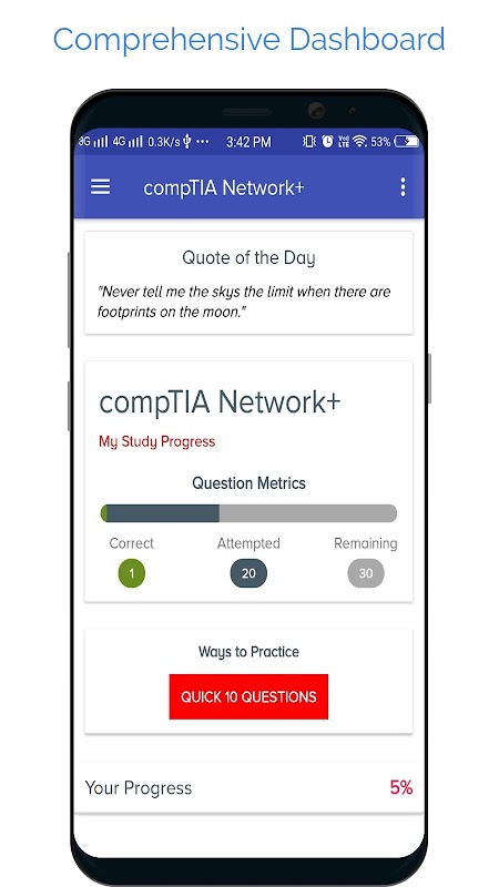 Aplikacja CompTIA Network + Practice Test (2019) to potężna aplikacja do egzaminu Symulator, która tworzy testy na podstawie egzaminu CompTIA Network +.