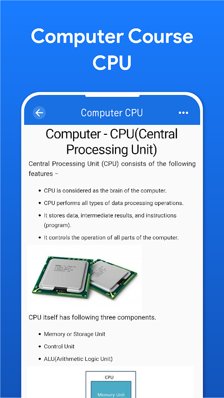 Ta aplikacja samouczka komputerowego obejmuje wszystkie tematy dotyczące podstaw komputera, takie jak urządzenie wejściowe, urządzenie wyjściowe, generowanie, pamięć, procesor, płyta główna, sieć komputerowa, wirusy, oprogramowanie, sprzęt itp.