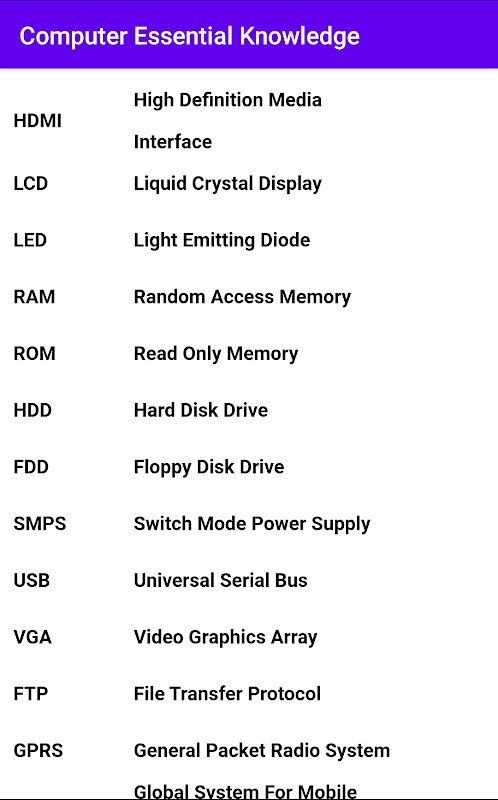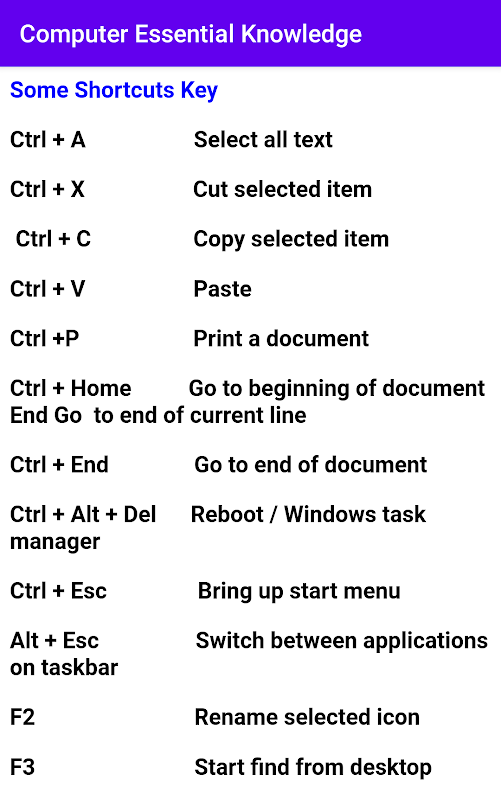 Computer essential knowledge App 2020 is very useful app for initial computer information.